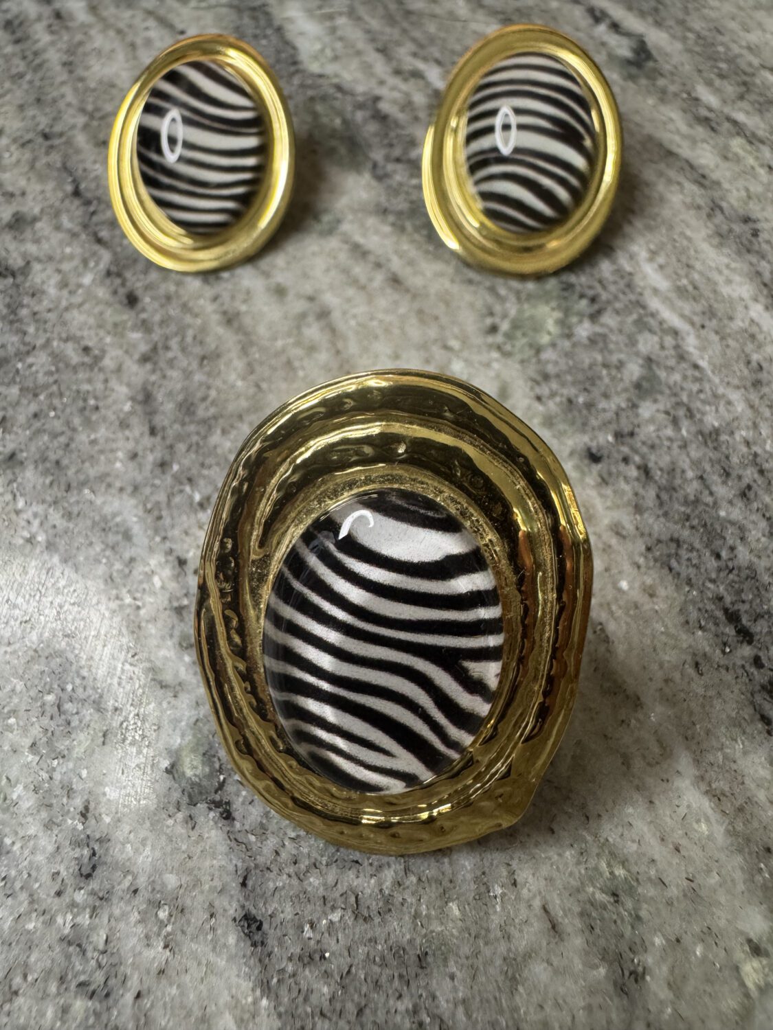 Σετ κοσμημάτων zebra δαχτυλίδι και σκουλαρίκια οβαλ