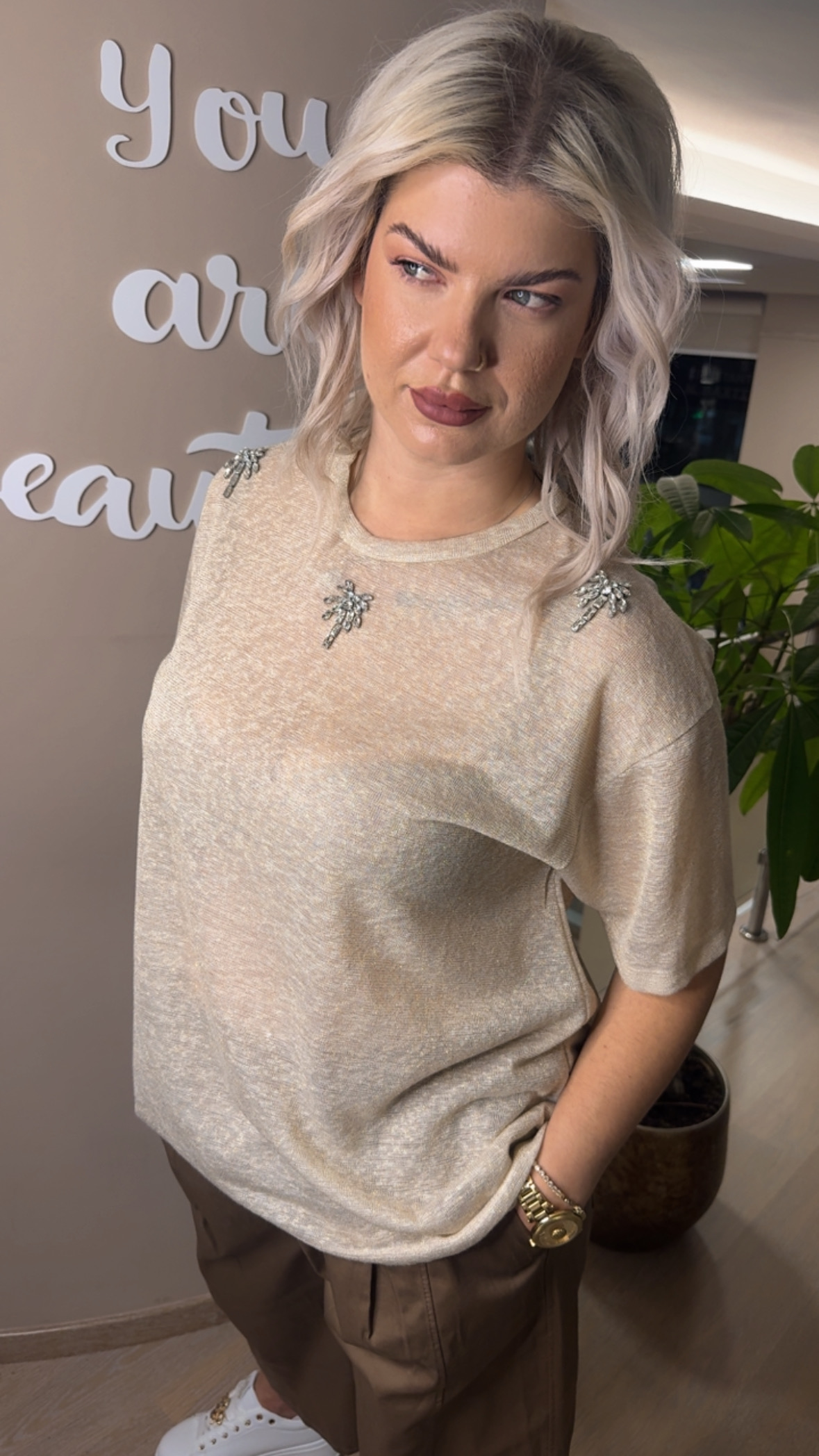 T-shirt Με Χρυσοκλωστή